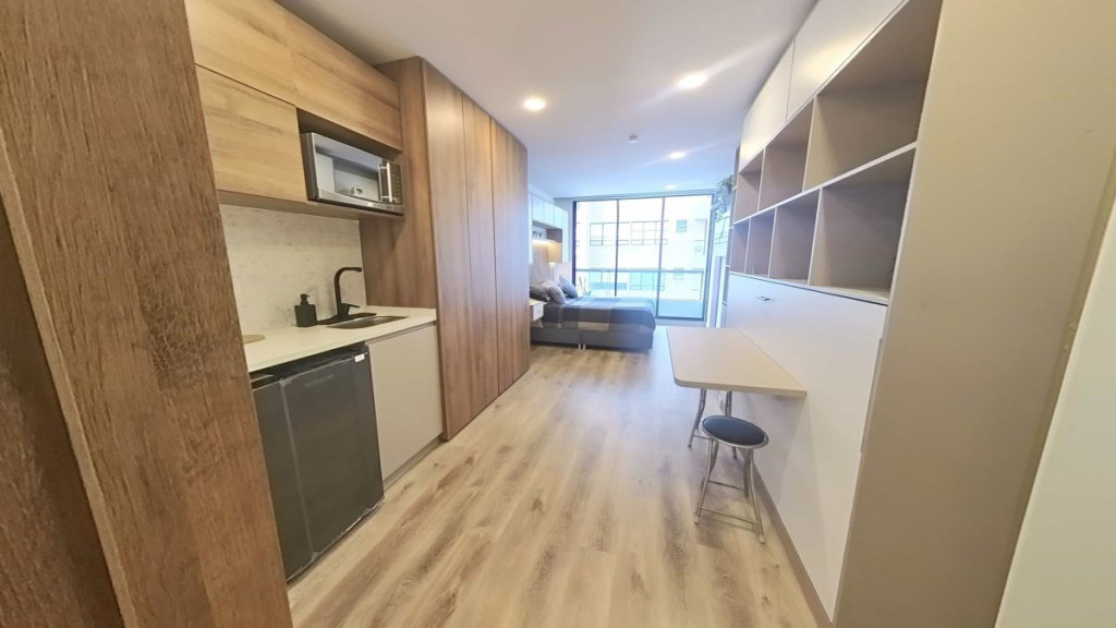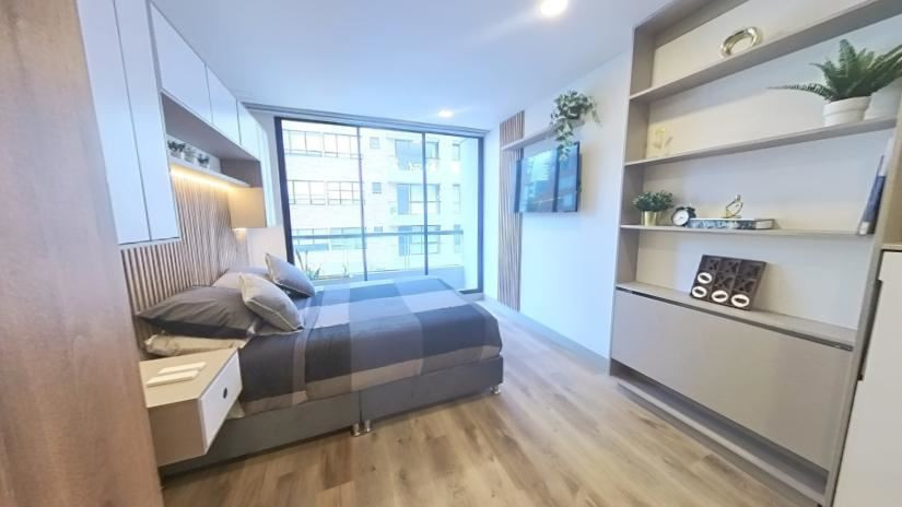 Gran Apartaestudio para inversión con autorización para arrendar por temporadas cortas, listo para generar ingresos. Ubicado en el prestigioso sector de Chicó, este loft de 26 m² en un 6to piso. El inmueble incluye: • Refrigerador, lavadora, estufa, microondas. • Cama matrimonial con cajones de almacenamiento, cama plegable que se convierte en mesa, escritorio plegable. • Cerradura digital, cuarto de lavandería, luces y persianas automatizadas. Además, el edificio cuenta con: • Piscina, gimnasio, sauna y turco, zona BBQ, parqueadero propio ¡Contáctanos y conoce su potencial!. A pocos pasos del parque de la 93, con una amplia oferta gastronómica, comercial y cultural, convirtiéndola en una zona ideal para estudiantes, parejas, solteros e inversionistas. Su fácil acceso permite un desplazamiento rápido a la mejor calle comercial del país, donde se encuentran el Centro Comercial Andino, el Retiro Shopping Center y el Centro Comercial Atlantis Plaza. Solo unos pasos de la zona empresarial