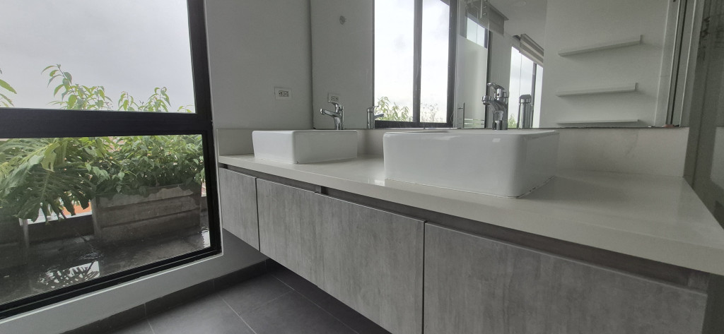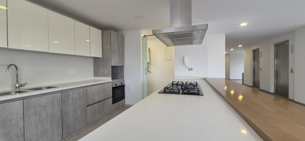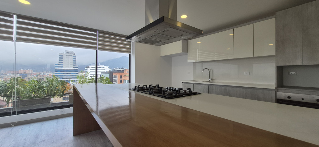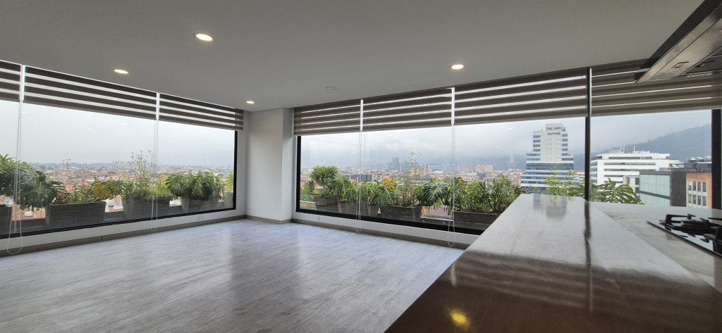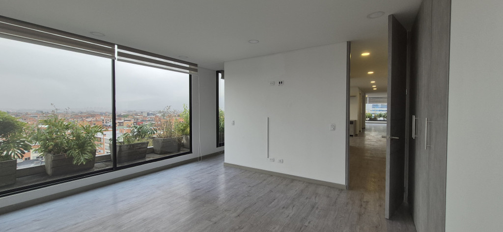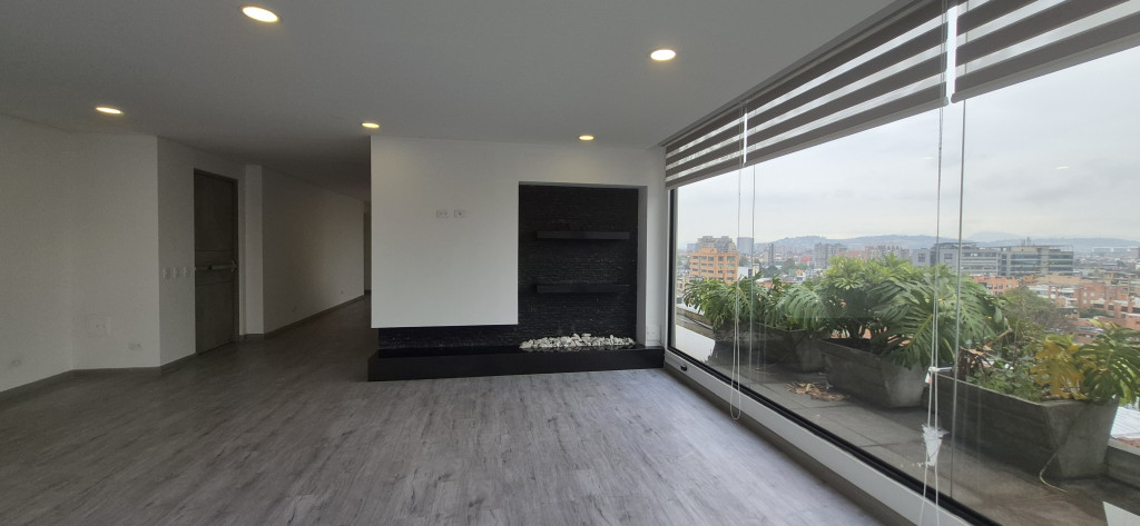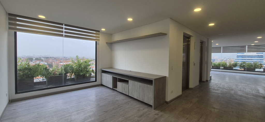 PENTHOUSE EN ARRIENDO – SANTA BIBIANA Espectacular apartamento de 145 m² con excelente distribución y una magnífica vista panorámica de la ciudad. El área social cuenta con sala-comedor independiente y chimenea, complementada por una cocina abierta de acabados modernos y zona de ropas independiente. El área privada dispone de estudio, hall de alcobas y tres habitaciones: la principal con vestier, clóset y baño privado, y dos habitaciones secundarias, cada una con su propio baño. El inmueble ofrece acceso directo desde el ascensor, dos parqueaderos y depósito. El edificio cuenta con vigilancia privada 24/7 y un elegante lobby de recepción.