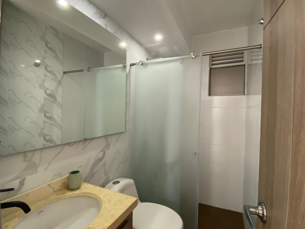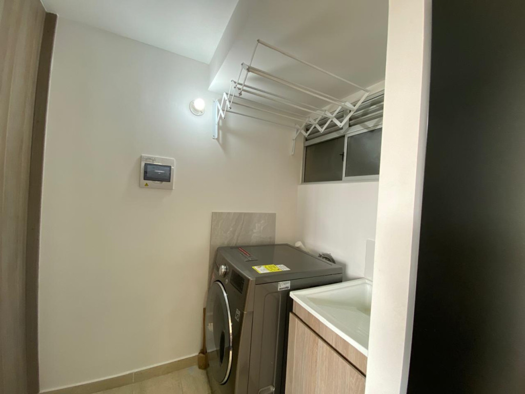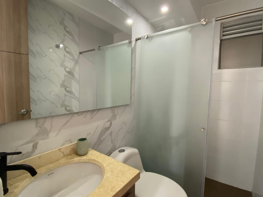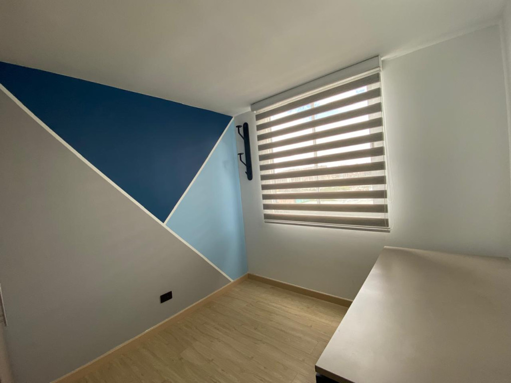 Apartamento en el piso cuarto del edificio, vista interior con balcón, cocina americana, dos habitaciones con closet y cortinas, este apartamento cuenda con dos baños con acabados premium, cuenta con garaje privado cubierto y un deposito, que esperas para agendar, precio único en la zona
