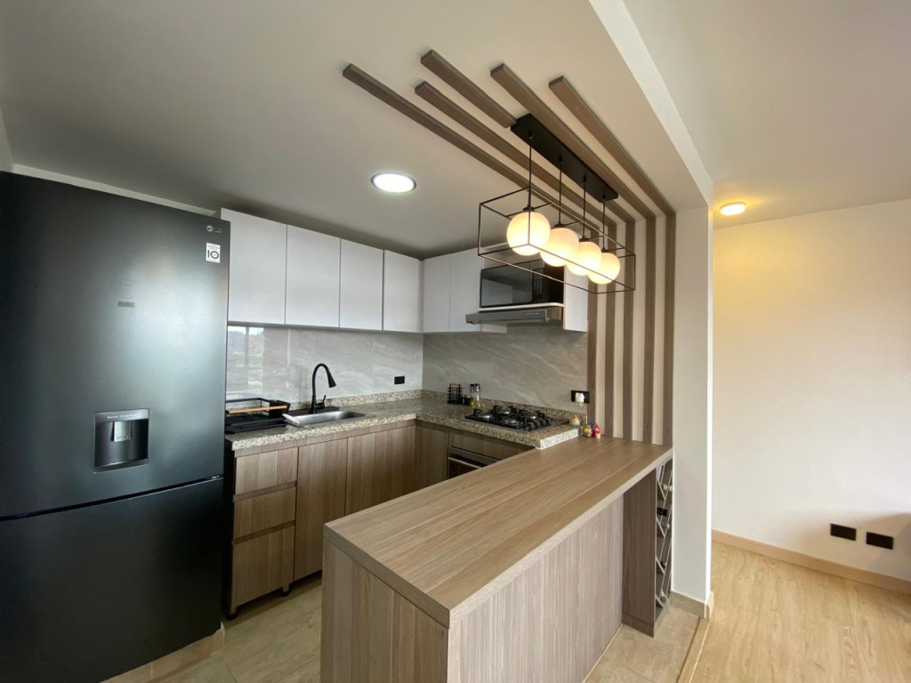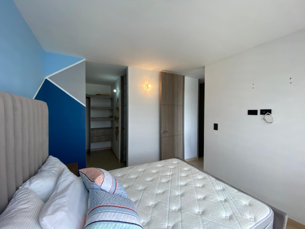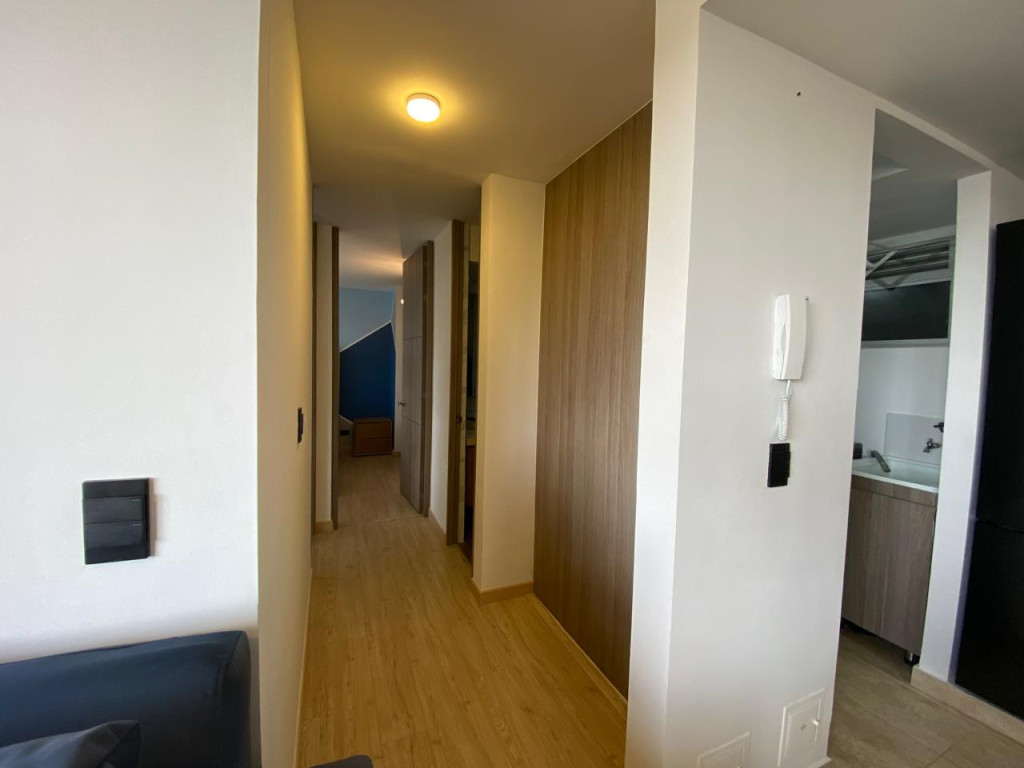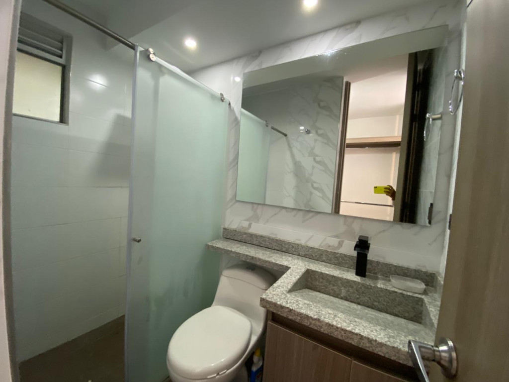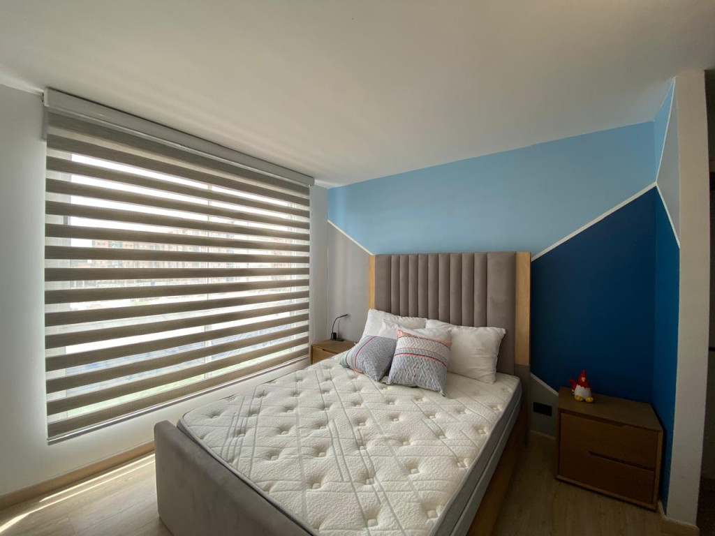 Apartamento en el piso cuarto del edificio, vista interior con balcón, cocina americana, dos habitaciones con closet y cortinas, este apartamento cuenda con dos baños con acabados premium, cuenta con garaje privado cubierto y un deposito, que esperas para agendar, precio único en la zona