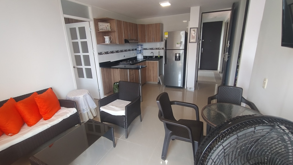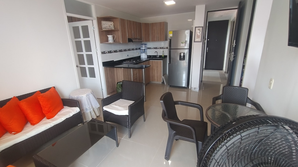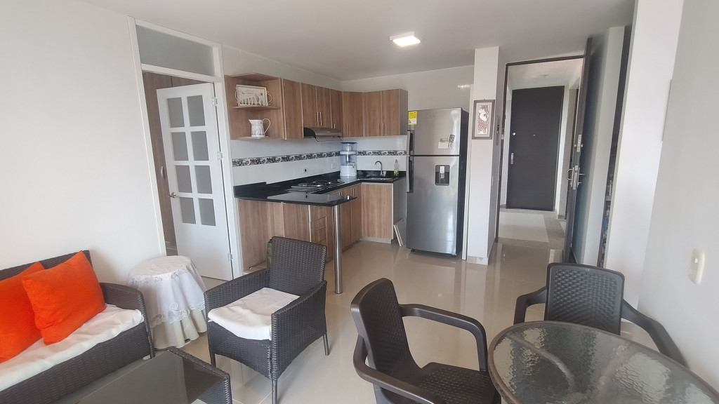 Apartamento en venta en el Conjunto Hacienda Peñalisa Ceiba, ubicado en un quinto piso con vista exterior. Cuenta con cincuenta y cinco metros cuadrados distribuidos en dos habitaciones, dos baños, cocina integrada a la sala con salida a balcón y zona de lavandería independiente. El conjunto ofrece piscinas para adultos, piscina para niños, cancha deportiva, zona de BBQ, salones comunales y vigilancia las veinticuatro horas. Ubicado en Ricaurte, Cundinamarca.