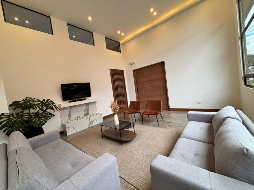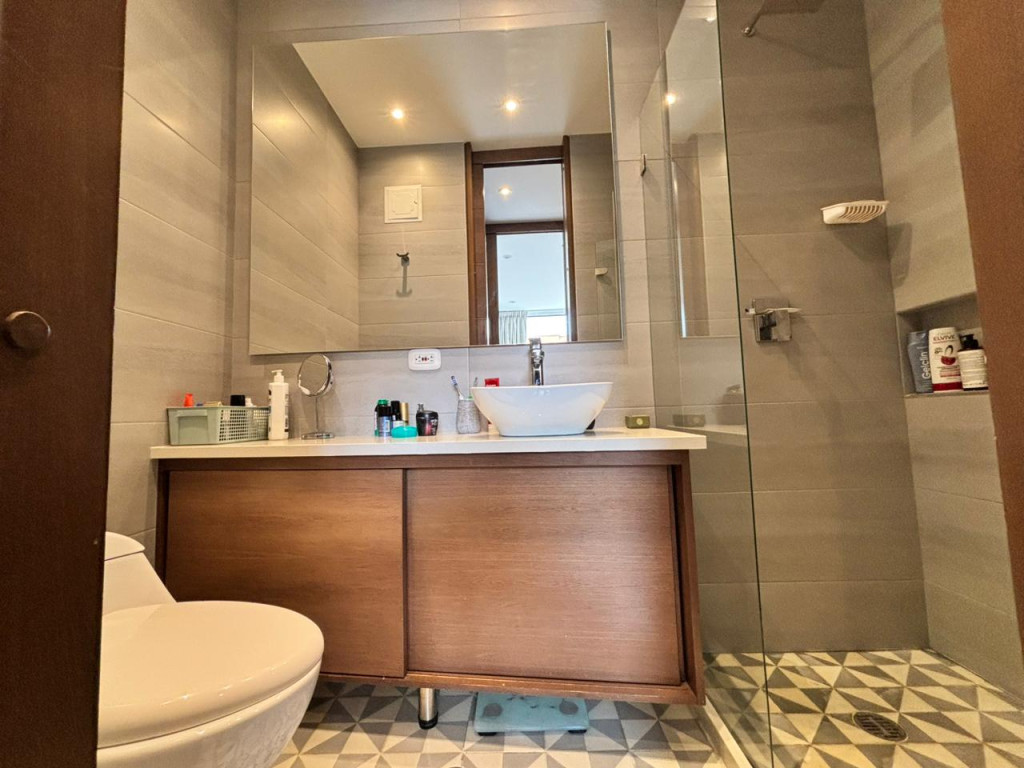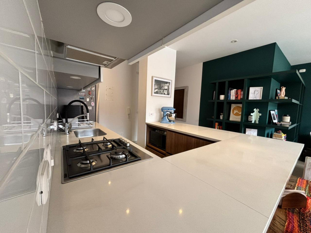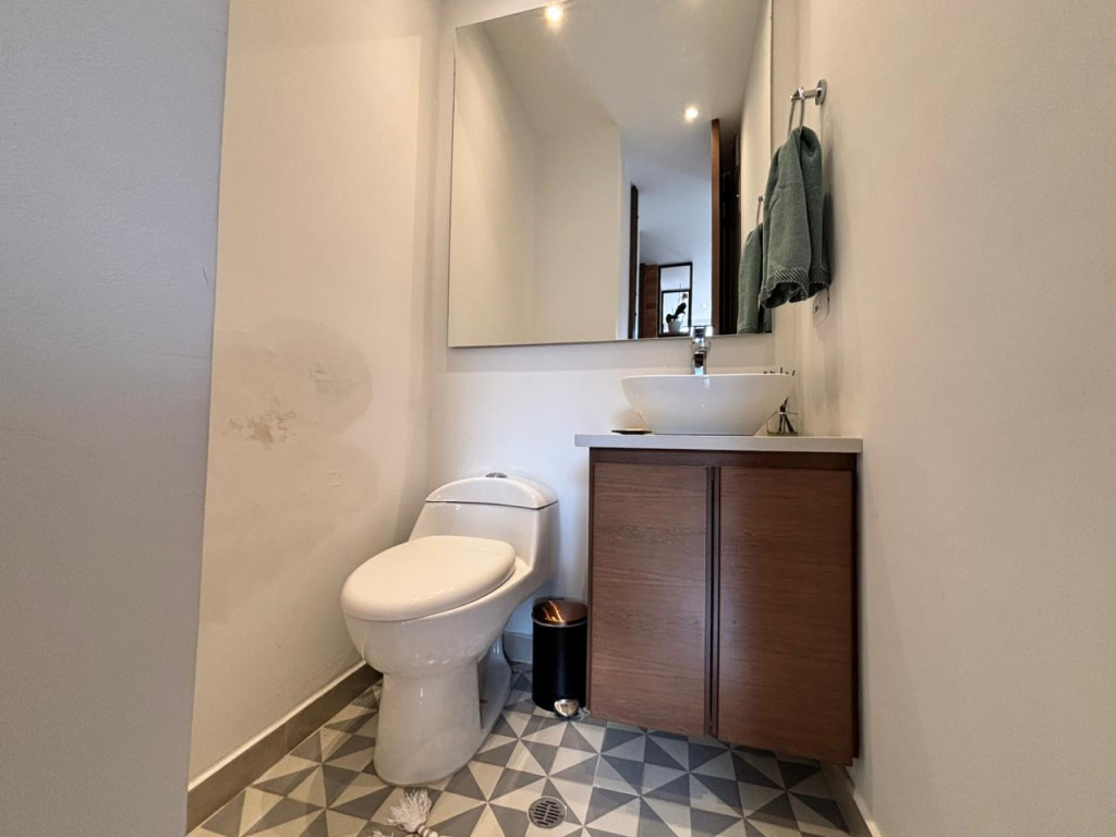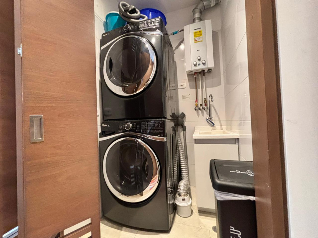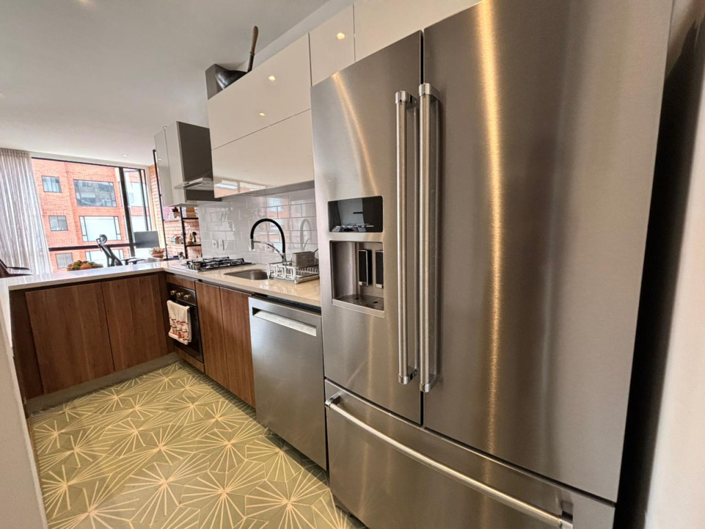 Apartamento en Venta exterior de 65 m² , ubicado en el corazón de Santa Paula , una de las zonas más apetecidas del norte de Bogotá por su tranquilidad, excelente oferta gastronómica y fácil acceso a vías principales como la Autopista Norte, la NQS y la Carrera Novena. Con techos de doble altura y amplios ventanales, este hogar se destaca por su extraordinaria iluminación natural y una sensación de amplitud difícil de encontrar en el sector. Su diseño moderno y detalles únicos —como una elegante pared verde, muros en ladrillo a la vista y mobiliarios fijos de excelente calidad— hacen que cada espacio sea funcional y a la vez lleno de carácter. El apartamento cuenta con: Distribución y áreas - Una habitación amplia y luminosa, con mueble fijo bajo la TV para mayor capacidad de almacenamiento. - Dos baños: uno social y un baño completo dentro de la habitación. - Cocina abierta y muy cómoda, equipada con horno a gas, horno eléctrico, estufa de 4 fogones, espacio para microondas y lavavajillas . - Zona de lavandería independiente , con espacio para lavadora y secadora grandes. - Calentador de agua a gas. - Balcon - Mobiliarios fijos incluidos, como una moderna biblioteca, un escritorio integrado en el estudio y el mueble de la alcoba principal. Depósito. Parqueadero: Incluye un parqueadero de 22 m² configurado en servidumbre para dos carros, ideal para aprovechar al máx