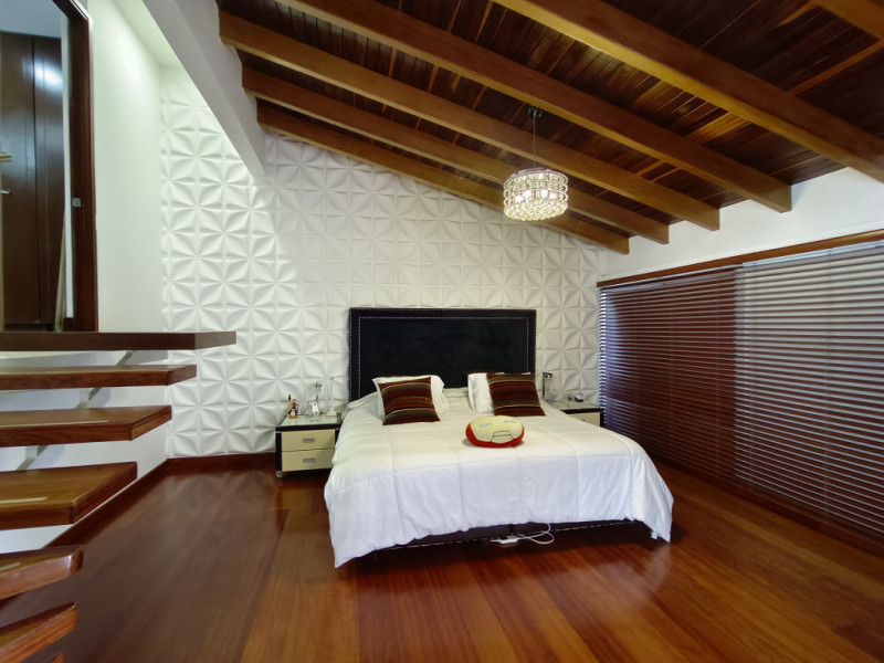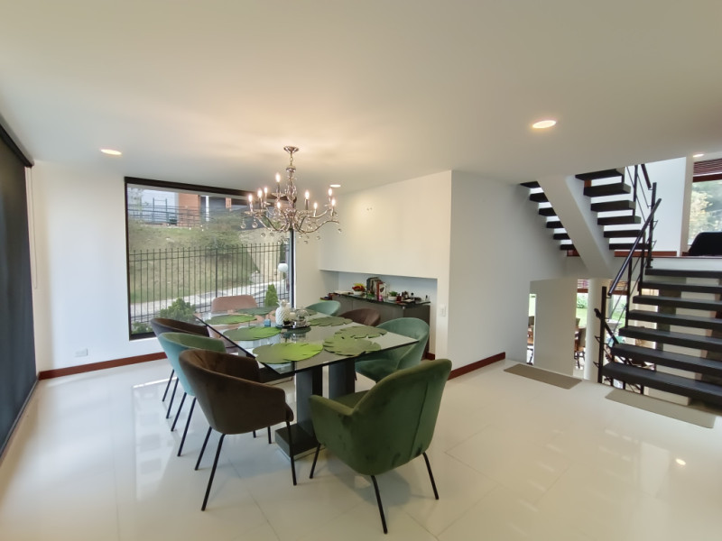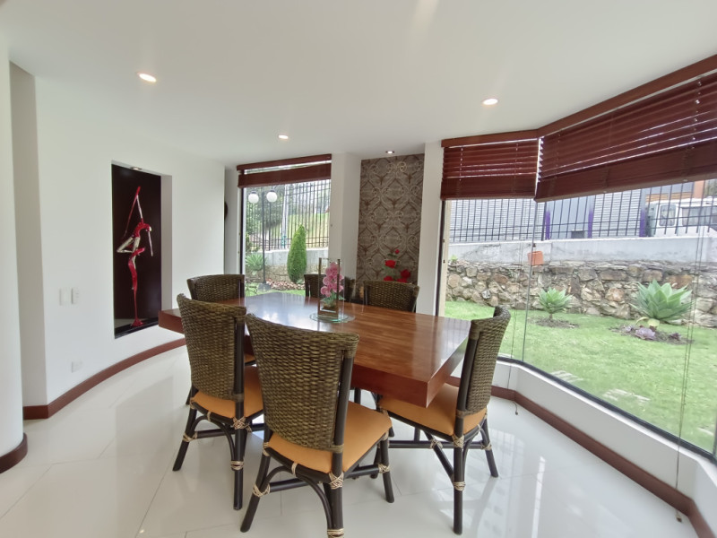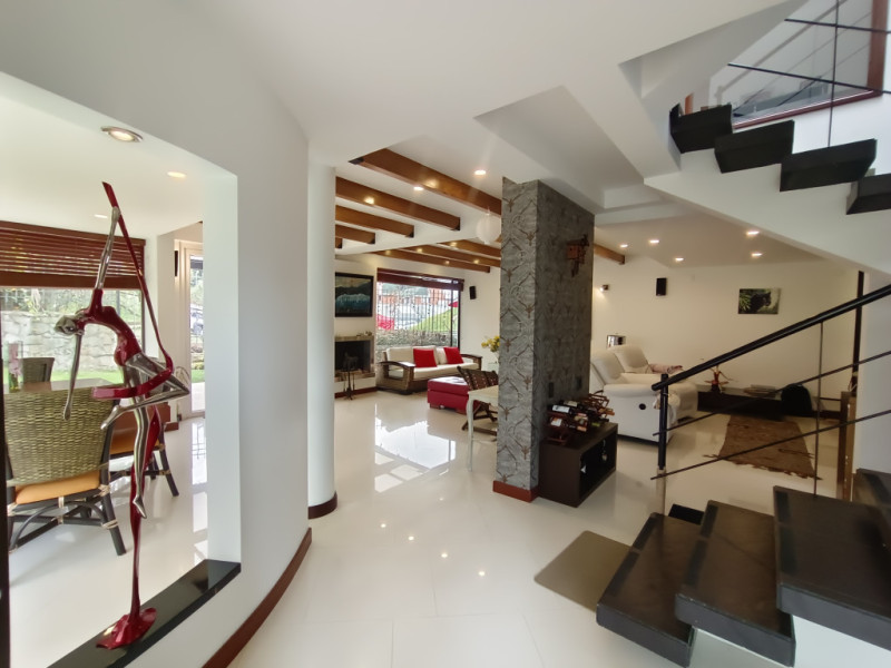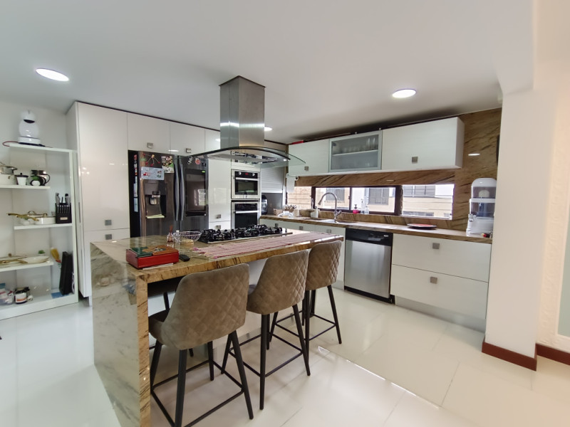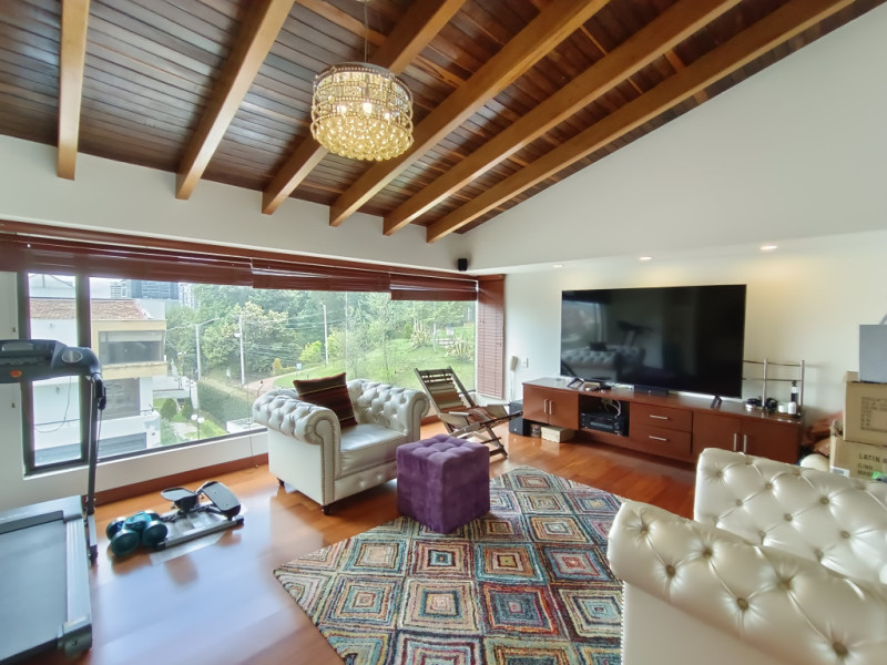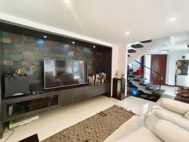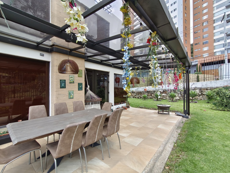 vendo Casa moderna en niveles, ubicada en los cerros orientales del norte de Bogotá, esta casa de 350 mts2, cuenta con 4 habitaciones, todas con baño en suite. Amplias zonas sociales como lo son sala con área de tv, 2 áreas de comedor independiente, cocina abierta totalmente equipada, la casa tiene turco y jacuzzi privados. En el exterior pérgola con amplias zonas verdes para que goces de momentos inolvidables en familia. Estacionamiento cubierto con cargador para vehículo eléctrico, caldera de agua caliente, piso con calefacción radiante, jacuzzi y turco en la casa. Zona para el servicio con cuarto y baño. Amplia zona de lavandería. El conjunto cuenta con capilla, CCTV, portería 24 horas, muy cerca de la carrera séptima, la calle 147 y la calle 153. Supermercados, colegios y universidades muy próximos. Ven y conoce tu nueva casa!