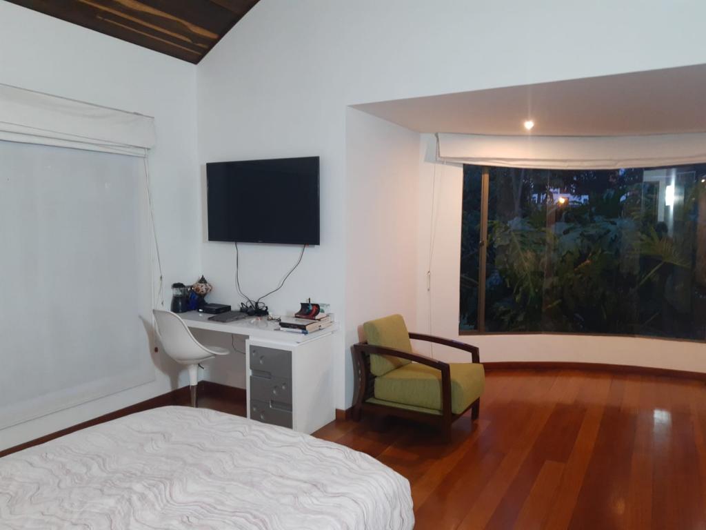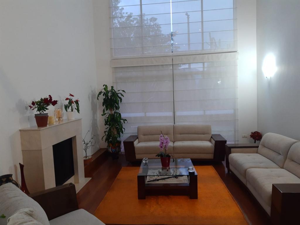Arriendo Casa en San Sebastián Guaymaral. La casa consta de tres (3) alcobas cada una con su baño, la alcobas están en el primer piso, cuenta con terraza , sala con chimenea y salida a zona de BBQ, comedor independiente, Cocina integral, zona de lavandería, cuarto y baño de servicio, estudio, family room, deposito , dos (2) garajes cubiertos y dos(2) descubiertos mas, la casa posee una vista bellísima en todo su entorno con Jardines y árboles que hacen una excelente zona para descansar lejos del ruido de la ciudad, casa con muy buenos acabados y espacios agradables. Conjunto con amplias zonas verdes, buena seguridad y transporte.