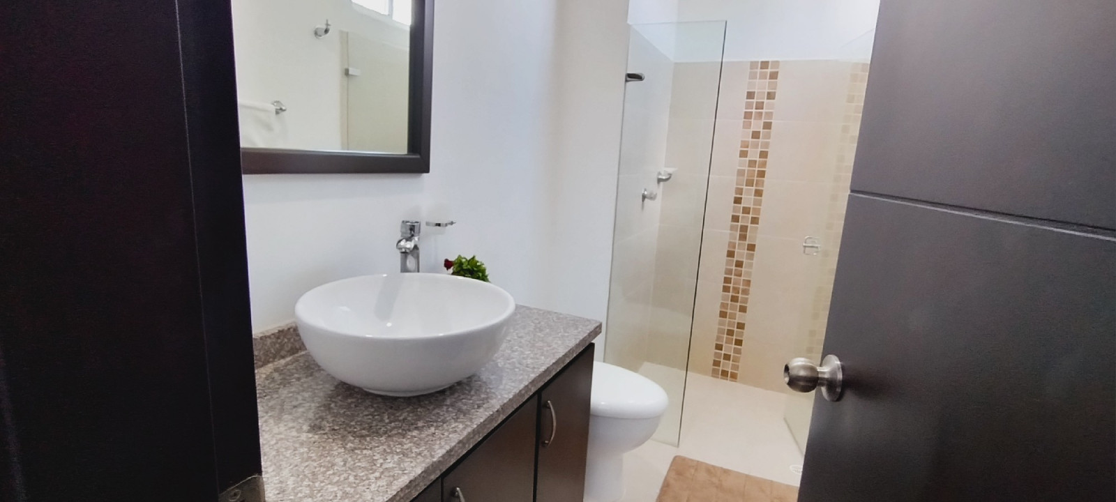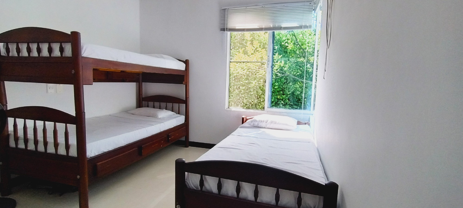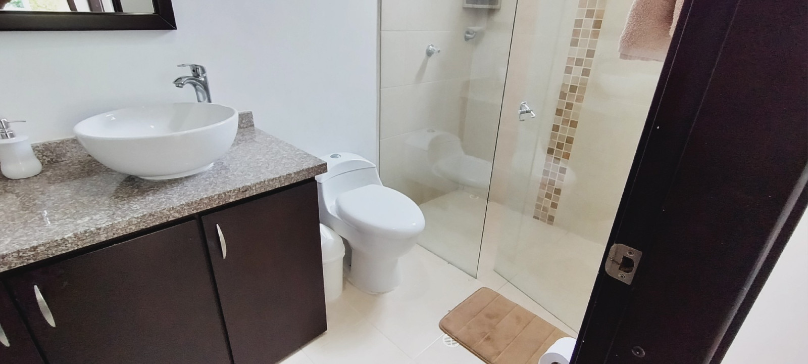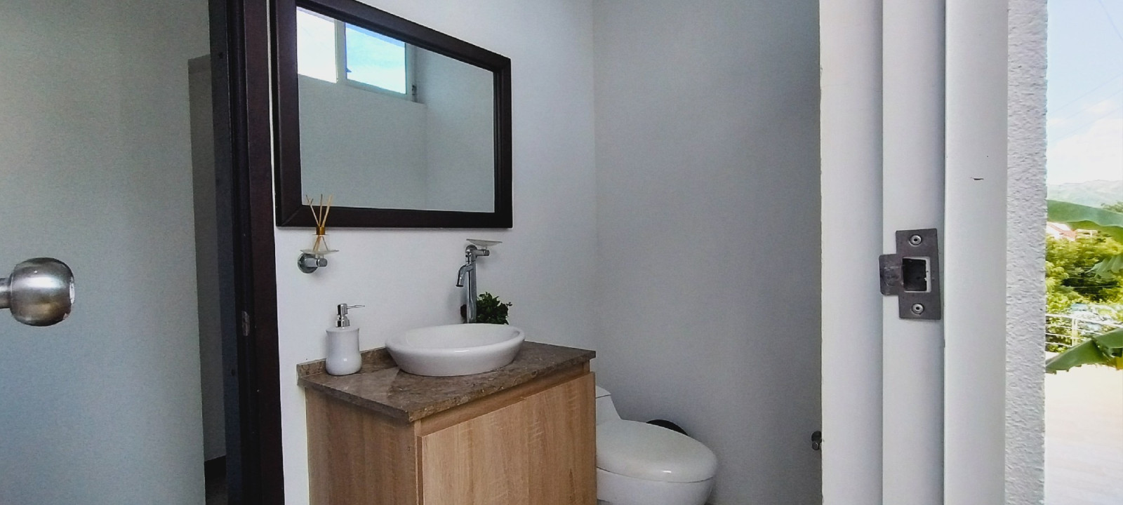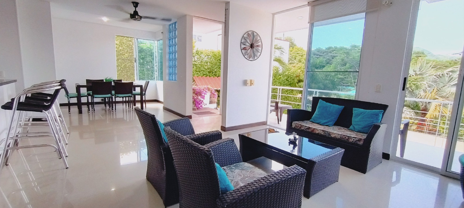 Hermosa casa en el condominio campestre Villa María, ubicado en el kilómetro cinco de Girardot, Cundinamarca. Cuenta con una construcción registrada de ciento cincuenta y cinco metros cuadrados y un lote de trescientos veinte metros cuadrados que incluye piscina privada, jacuzzi, zona de barbacoa, duchas para piscina, amplios jardines con espacio para sembrar árboles frutales y parqueadero para cuatro vehículos. En el primer nivel se encuentra la sala y el comedor en espacios independientes, una cocina abierta con zona de lavandería y un baño con ducha que funciona como baño social y como baño de servicio para la piscina. En el segundo nivel están ubicadas las cuatro habitaciones. Dos de ellas cuentan con baño privado y la habitación principal dispone de balcón con vista directa a la piscina. Las otras dos habitaciones comparten un baño completo. El condominio ofrece amplias zonas verdes, senderos ecológicos, mirador, canchas de tenis, fútbol y baloncesto, cuatro piscinas comunales, kioscos y seguridad permanente.