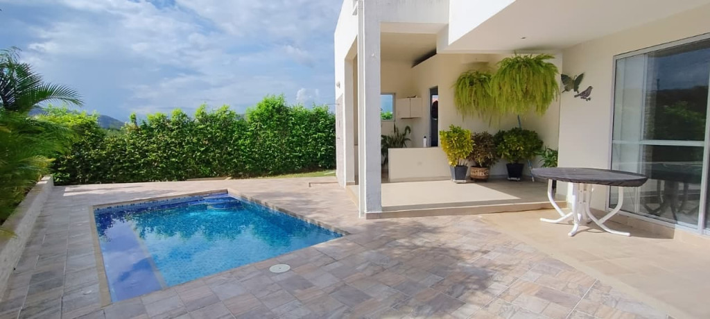 Casa en venta Conjunto Mirarios, Lote de 281 m², casa de 143 m². Cuenta con dos parqueaderos, sala comedor, cocina abierta, piscina, zona para BBQ en el primer nivel. Además, en este nivel se encuentra una habitación con baño privado. En el segundo nivel hay tres habitaciones: la principal con baño privado y terraza, una segunda habitación con terraza y una tercera habitación con balcón, baño auxiliar para alcobas. El conjunto ofrece seguridad y exclusividad para disfrutar en familia.