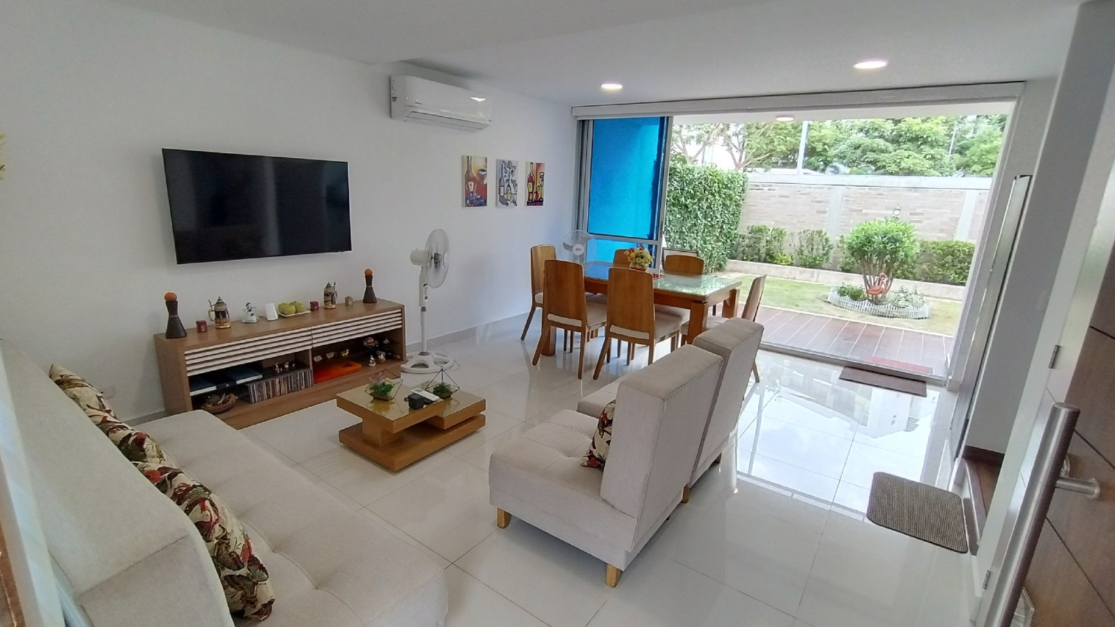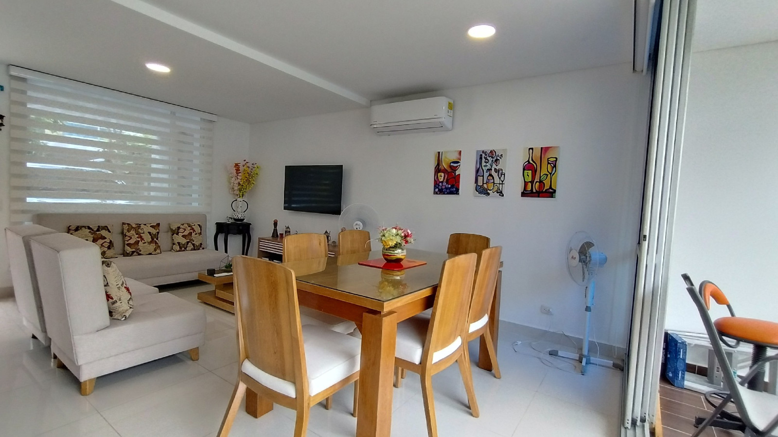 Descubre esta elegante casa en el conjunto Peñazul la villa en Ricaurte-Cundinamarca, consta de 120 mts2 con tres habitaciones, tres baños y dos parqueaderos. Esta propiedad cuenta con aire acondicionado en todas las habitaciones y sala, cocina semi abierta con barra al BBQ, patio con jacuzzi, una sala de TV o estudio con balcón. Ubicada en un condominio con vigilancia privada 24*7, zonas verdes, piscina y canchas deportivas. ¡Aprovecha esta oportunidad única y contáctanos para agendar una visita!