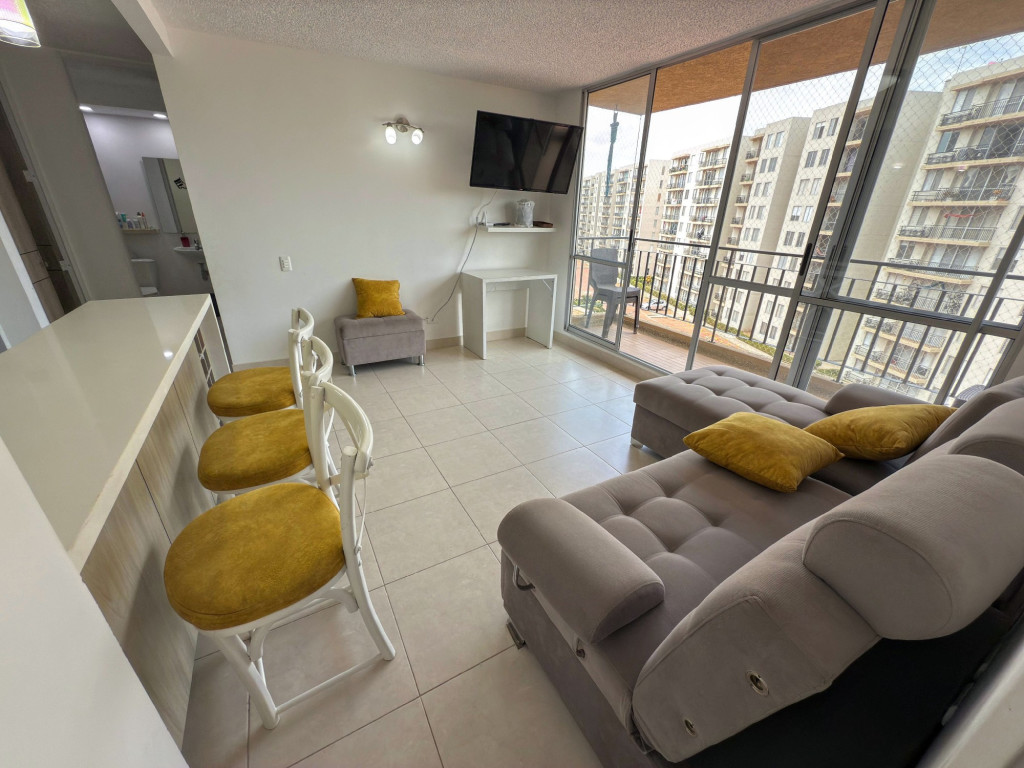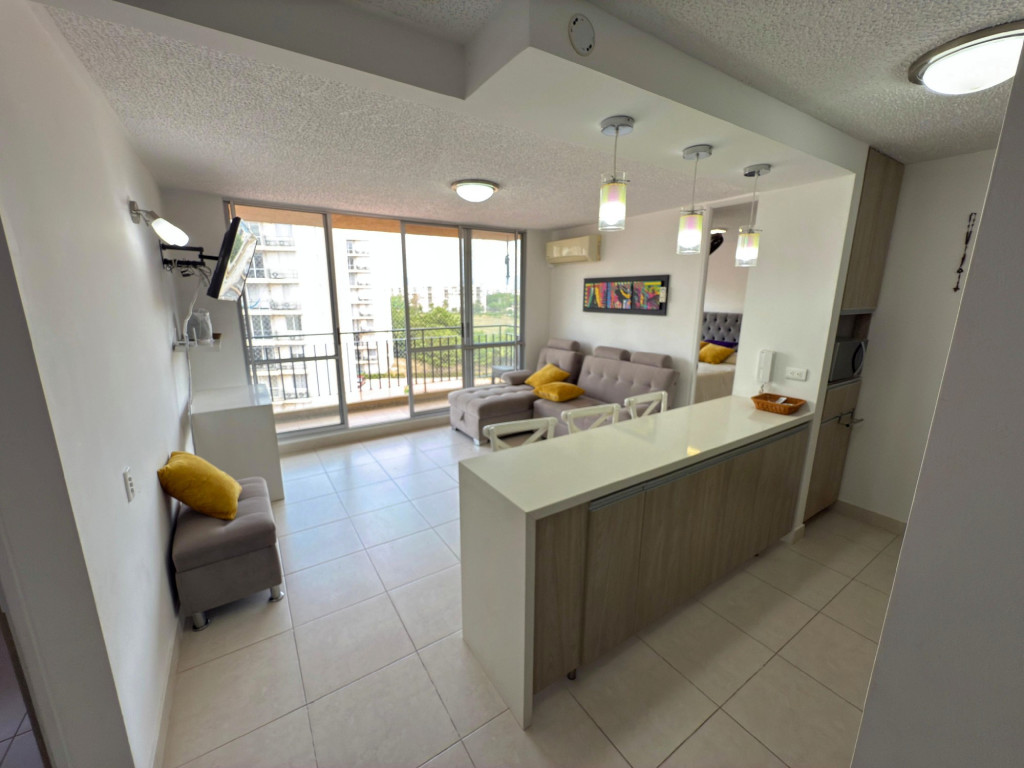 Venta de apartamento en Ricaurte Cundinamarca Conjunto Las Palmas Manaca ubicado en un sexto piso con vista exterior de 53 mts2 consta de dos habitaciones, dos Baños, ( habitación principal con baño) sala -comedor, balcón, Cocina abierta. El conjunto cuenta con seguridad privada 24 horas , piscina para adultos y niños, salón social, gimnasio, cancha múltiple, parque infantil, zonas BBQ. Cerca al hotel Peñalisa Colsubsidio.