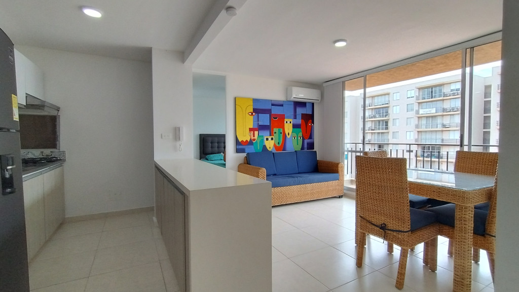 Venta de apartamento en Ricaurte, Cundinamarca, en el conjunto residencial Las Palmas Manaca, sector Las Palmas. Ubicado en sexto piso con ascensor, con un área aproximada de 53 m². El inmueble cuenta con dos habitaciones con clóset, dos baños (habitación principal con baño privado), sala comedor con excelente iluminación natural, balcón con vista exterior, cocina abierta tipo americano y zona de ropas. Apartamento en muy buen estado, ideal para vivienda, descanso o inversión para renta vacacional en clima cálido. El conjunto residencial ofrece vigilancia privada 24 horas, piscina para adultos y niños, salón social, gimnasio, cancha múltiple, parque infantil, zonas BBQ, zona de juegos y parqueaderos de visitantes. Excelente ubicación cerca al Hotel Peñalisa Colsubsidio, supermercados, restaurantes y vías principales de acceso.
